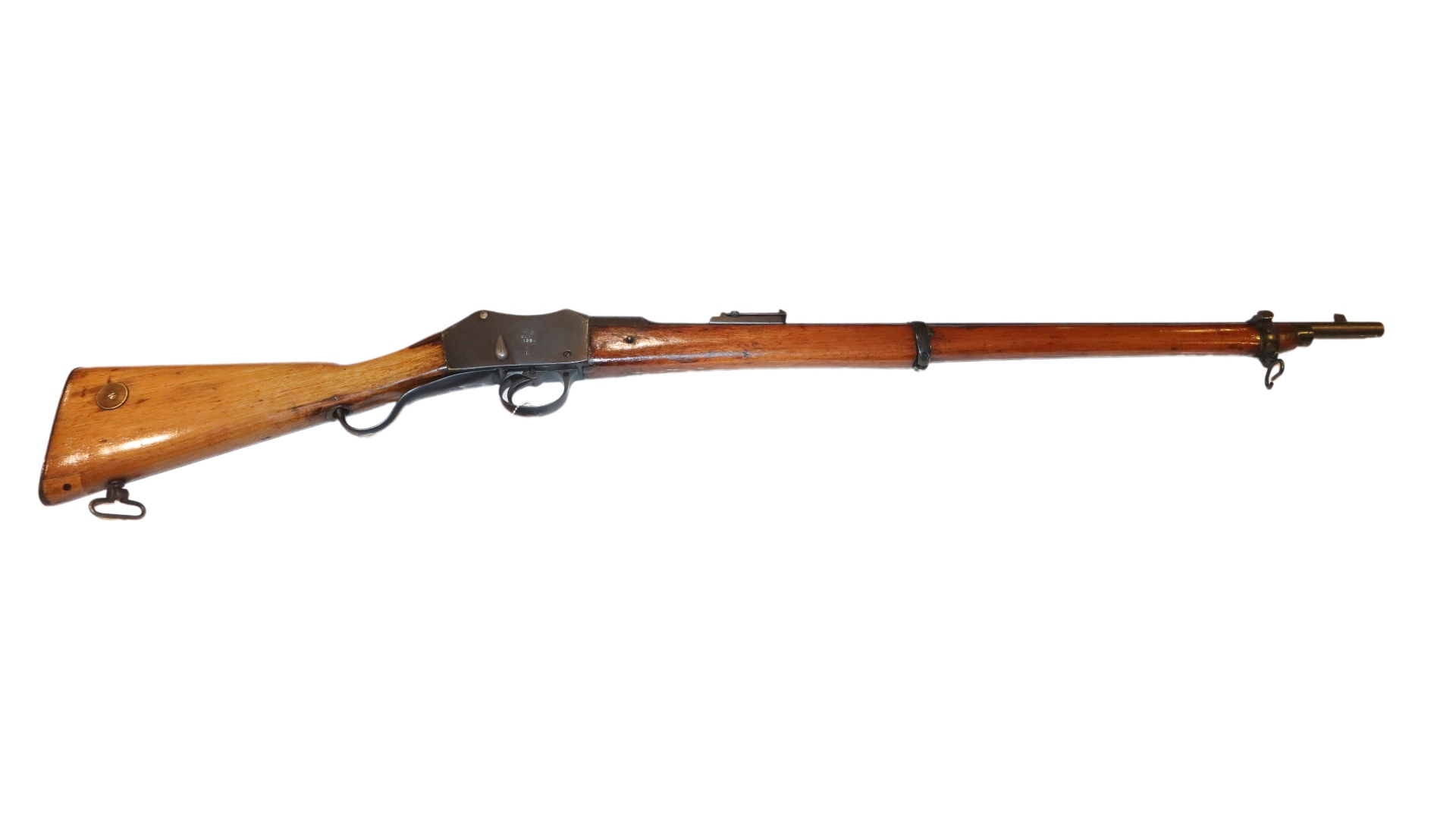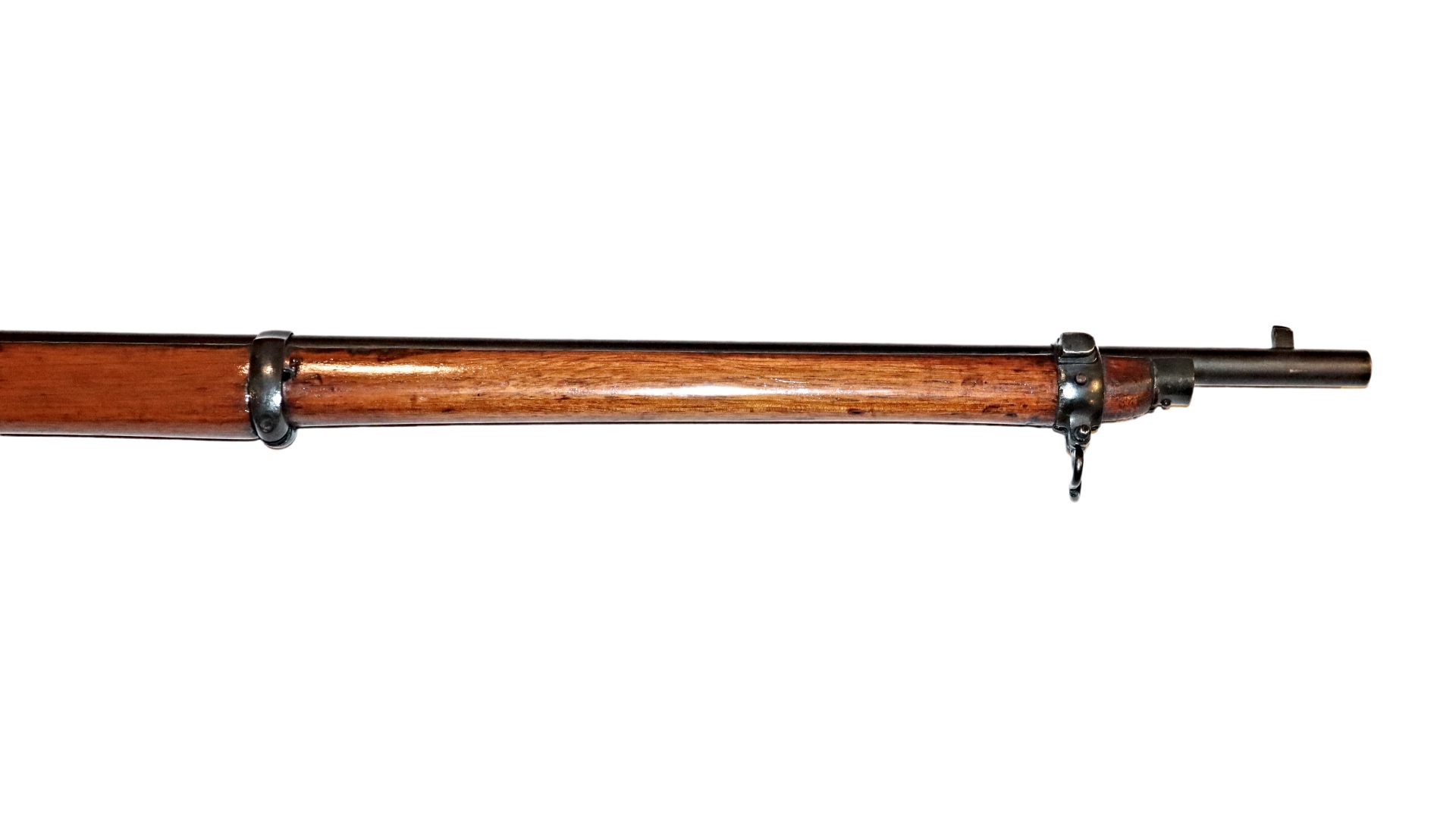 Excellent condition BSA made Martini action rifle in .303 caliber that has been converted to .410 guage. Made in 1883 and then converted in Egypt in 1906 at the Citadel factory. It has a 2 1/2″ 65mm chamber, 14 3/8 LOP and a 29 1/2″ barrel. Lovely patina to the woodwork.