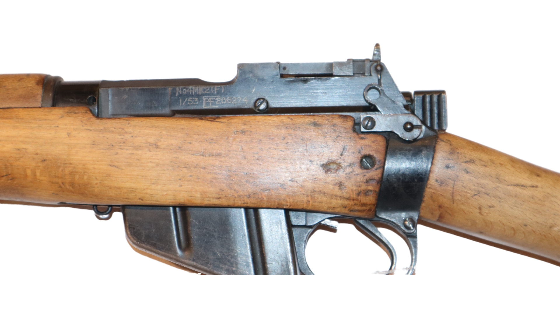 Very good condition 1953 produced No 4 Mk 2 in .303 caliber with all matching numbers to bolt,action,woodwork and even the magazine. With a good bore and light coloured woodwork made at the Fazakerly factory.