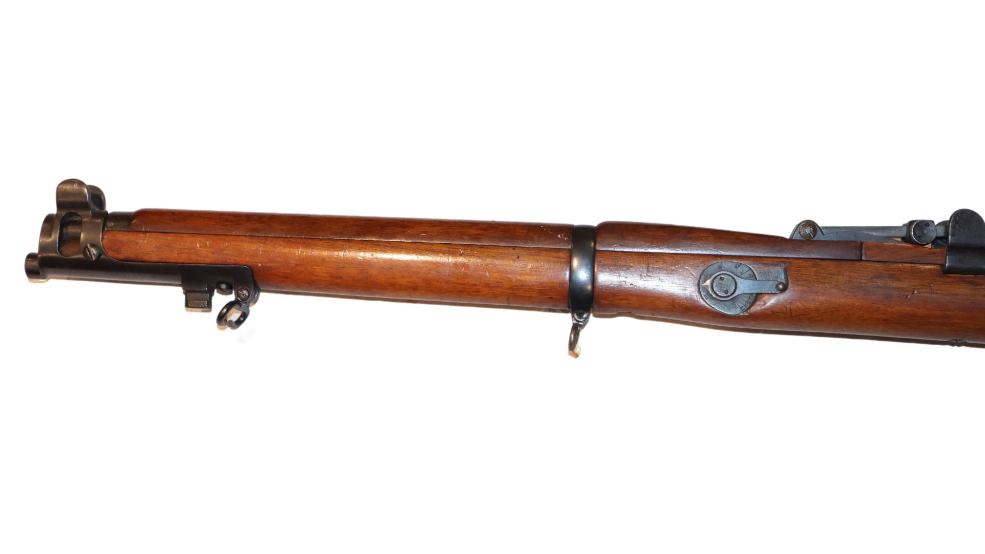 Excellent condition London Small Arms made SMLE converted to .22LR caliber.Complete with front and rear volley sights and a BSA flip up target/peep sight with correct empty mag to collect the spent cases.