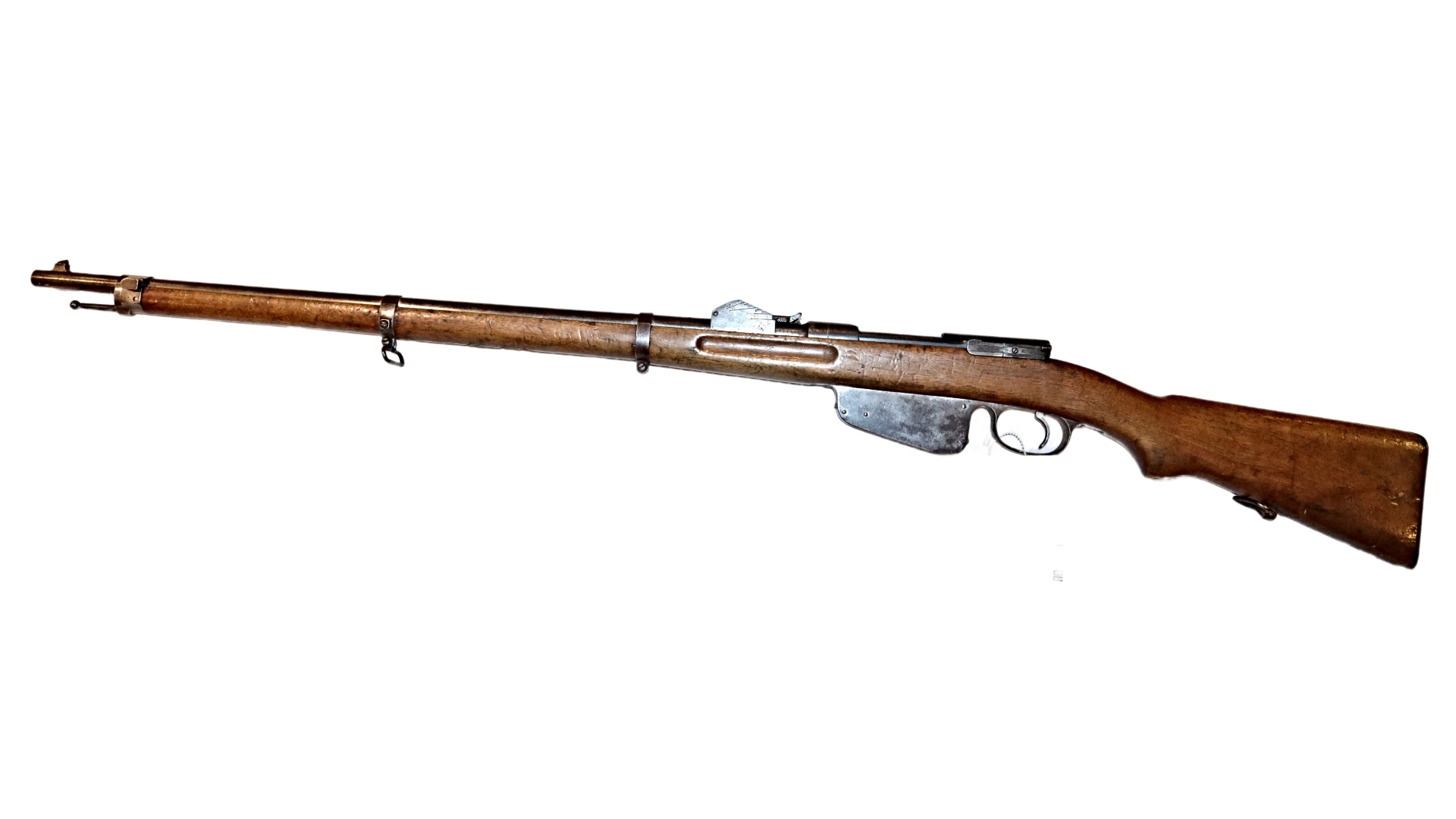 Rare Steyr mannlicher straight pull Model 1886/90 made by Oewg with matching numbers to woodwork and action. These guns were converted to 8 x 50R caliber and this gun is Regimentally marked to the 2nd Jager Regiment.