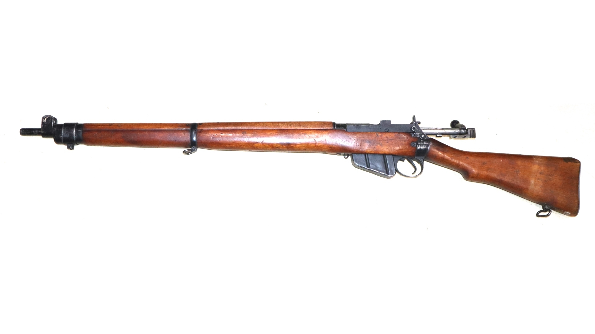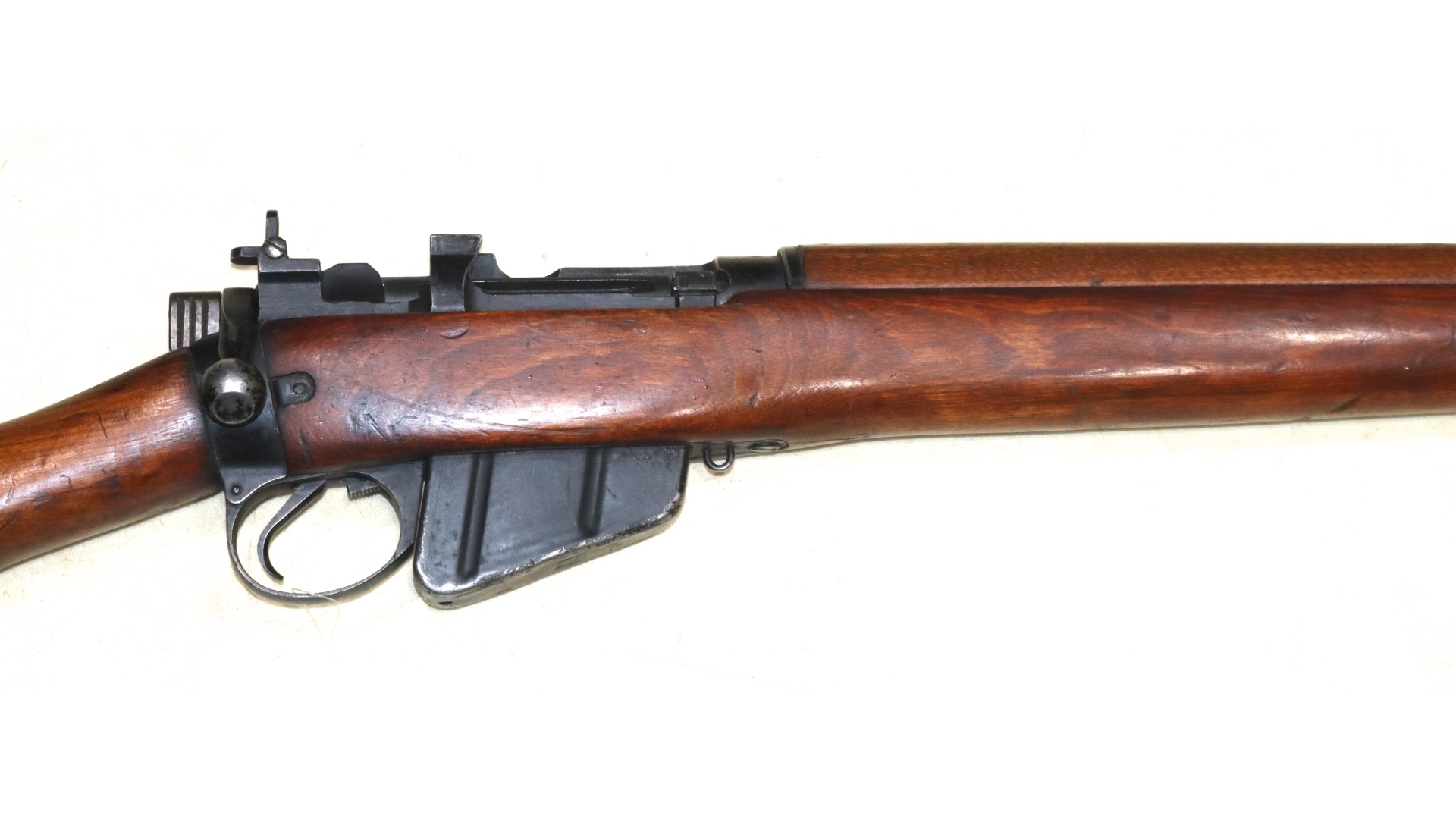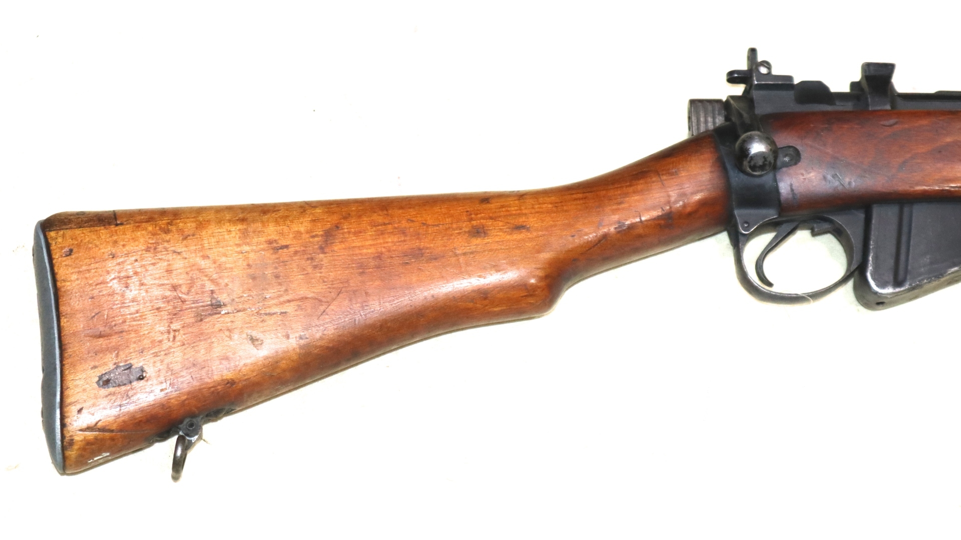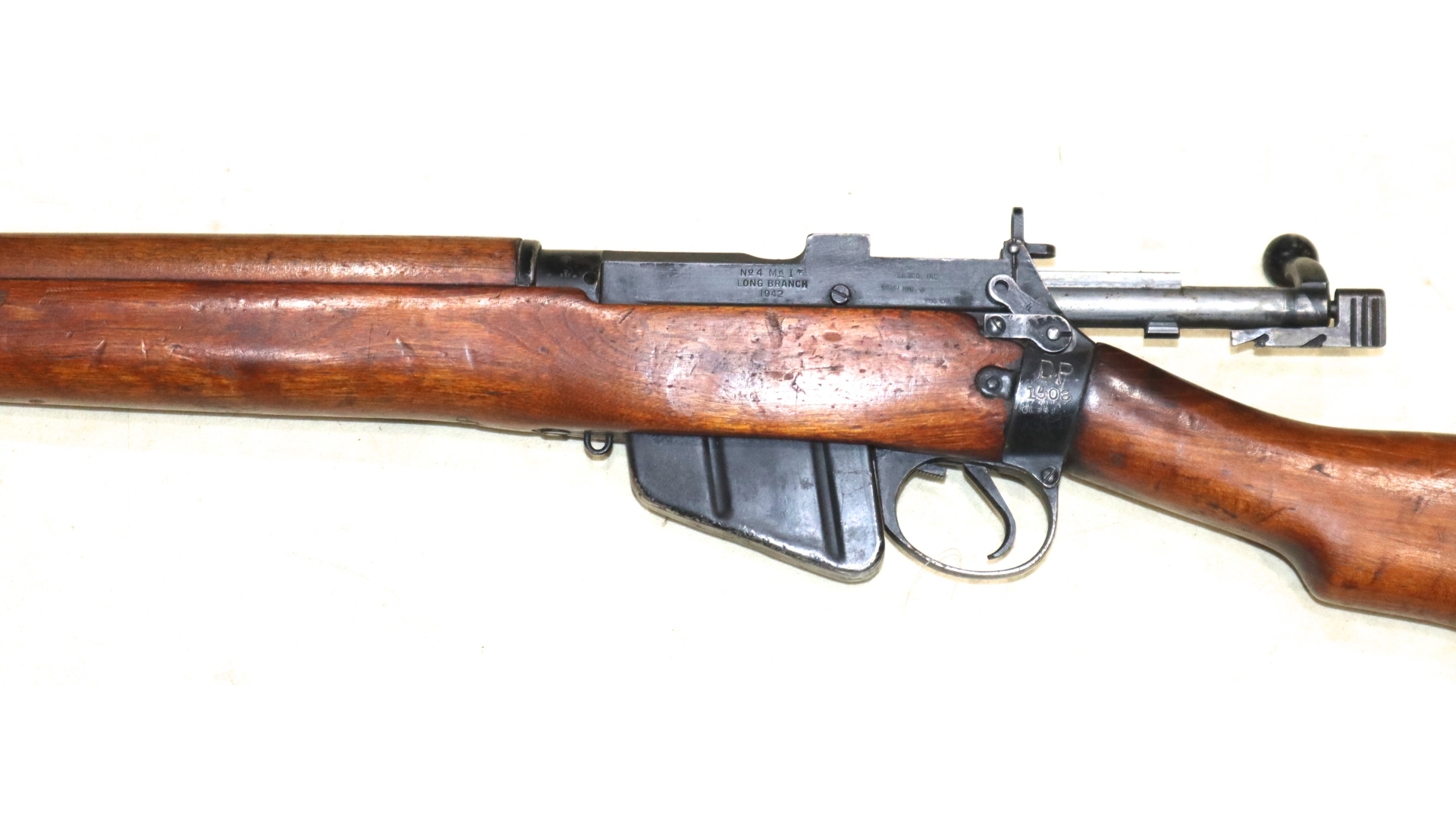 Very good condition 1942 dated Long Branch No 4 Mk 1 that has been converted to .410 guage. This gun has had the magazine plate welded so will only take one round at the time. We do have available similar guns (No 4’s in .410) that are able to take at least two if not three cartridges in the chamber and the magazine. These are fully available on a standard Shotgun Certificate as they have all been through the Proof House for Magazine Restrictiion Certificates.